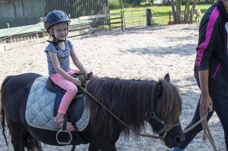 Voor hen was er ook nog een verrassing. Er was zaterdag uitleg over een pony, deze werd eerst geborsteld en daarna mocht Emma er een paar rondjes op rijden. Nina was hier te jong voor maar zij mocht toch meedoen en heeft ook nog een rondje op de pony gereden. Daar hadden ze allebei veel lol in. Dat kan je wel zien aan hun gezichten.